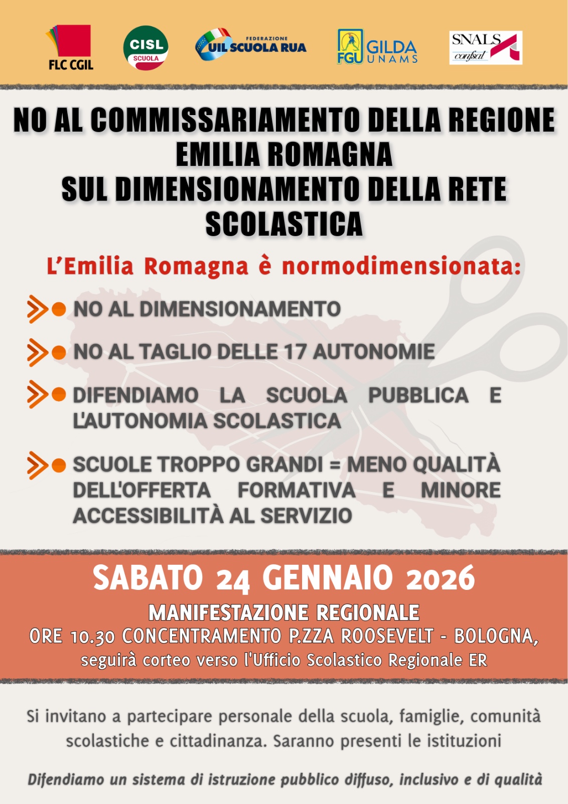 FLC CGIL, CISL Scuola, UIL Scuola RUA, Gilda UNAMS, SNALS CONFSAL dell’Emilia Romagna