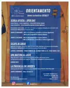 Per presentare agli studenti, alle studentesse e alle loro famiglie l’offerta formativa dell’istituto, il Liceo Corso organizza le seguenti iniziative: